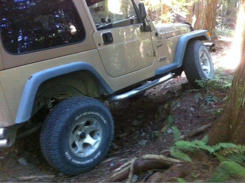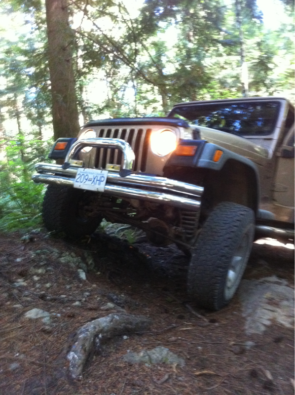 I have had my tj just over a month now, I was a little skeptical after the first time out, I was used to a dodge 2500, with a 4" lift and 35's. It had 4:10's and a super low first, I think the tj is still stock in that department, but has a 4" lift and 33's, the gearing difference took some getting used to. The other thing that had me worried was the lack of flex, I was not sure if it was the wheel base that made it feel different or the sway bars. So yesterday off came the sway bar links, had to cut the lower bolts on the front, I started to fab up some pins so I can just pop them off when I know I need more travel. I took it for a quick run with everything disconnected, I didn't notice a huge change on highway, but WOW huge difference off road, I could go over everything on the trail and still all four on the ground, not talking super tough stuff but more then the average guy would try. Rolled one front up a rock about 3 foot high like nothing, and up a 20" ledge with out spinning, now I'm wondering if I do need to lock both ends? Yeah I do!