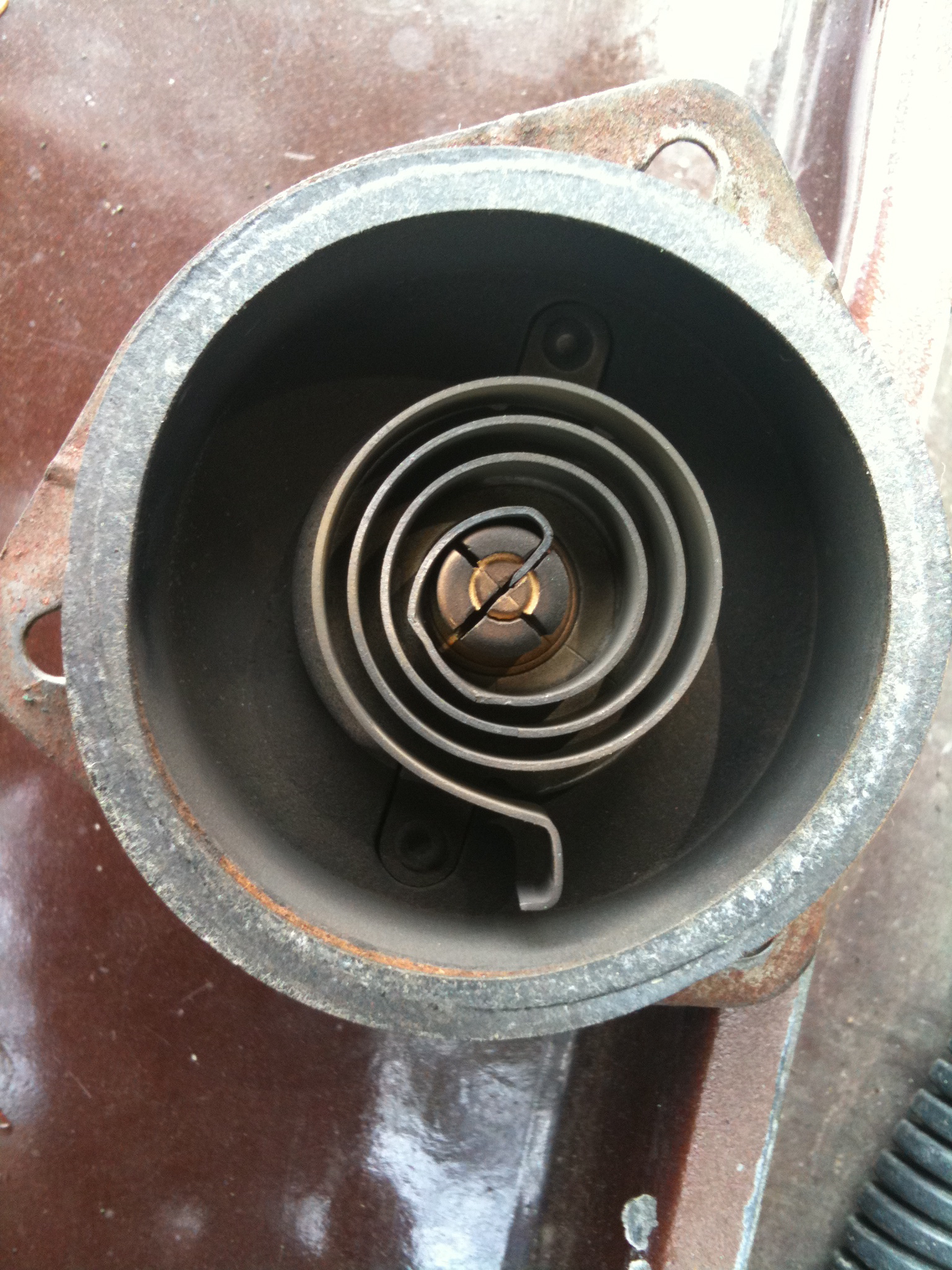 I heated up the engine then removed the choke cover with spring and marked its position. Then I tossed the spring in the freezer and marked its position after it cooled off. So, I think I know the spring's range of motion.