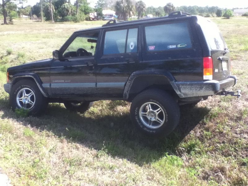 one tire was in the air and the other tire was up aginst the fender so tight it wouldent budge, i did get pulled out by another lifted 2wd cherokee though