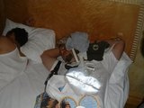 Long story short, last night out there, we partied like maniacs, and stumbled in at about 5pm. Steve and Wade, fell asleep first...BIG MISTAKE!!