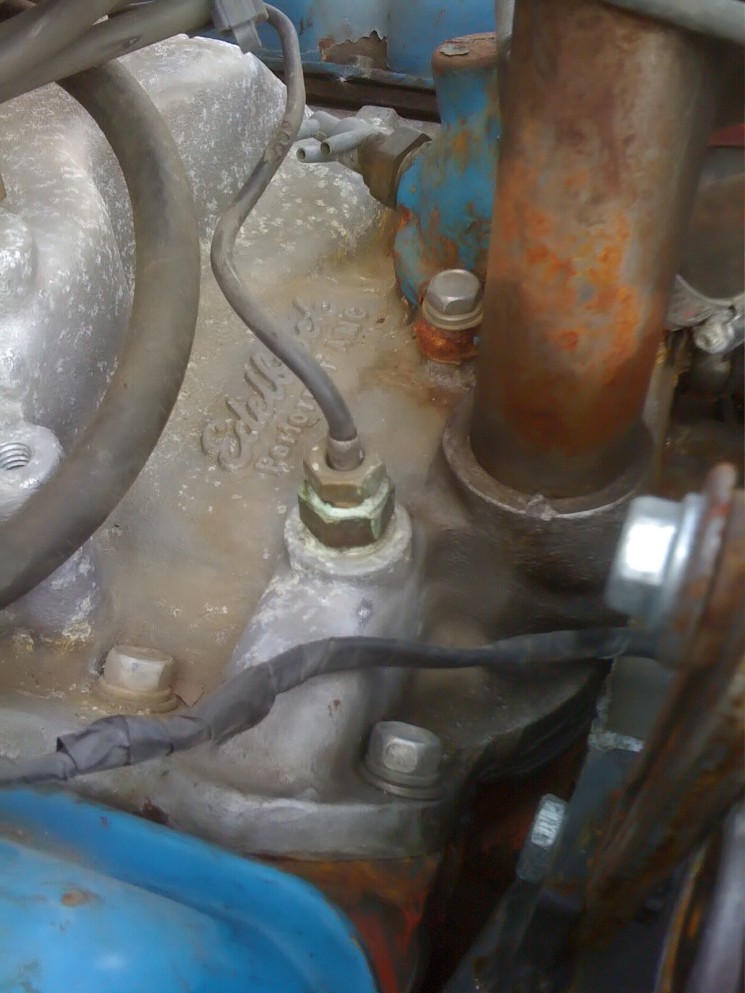 in the first picture is that large nut wielded to the block? also the hook-up for my 360 looks nothing like that. I think I might just get a new gauge that works for the sending unit that I have. unless you think it would be cheaper to ger the mechanical sending unit(if that is possible). I posted a pic of my sending unit so that you see what I'm looking at. whan I removed the sending unit in the picture the hole was too big for the "mechanical gauge wire thread thing".